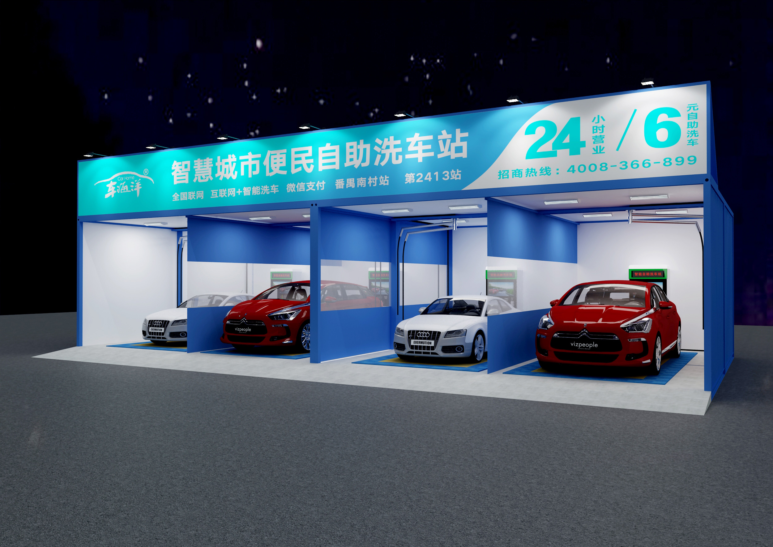 Smart car wash, open 24 hours a day, unattended. Self-service operation, car washing, vacuuming, disinfection functions are complete, and it only costs 6 yuan to...