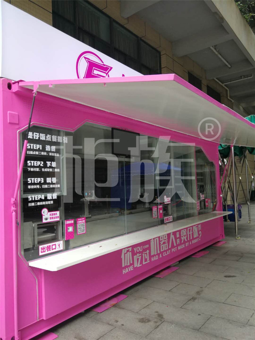 除了用于應(yīng)急的公路、社區(qū)、醫(yī)院等地臨時用房外,柜族為碧桂園旗下千璽機(jī)器人餐飲集團(tuán)定做的集裝箱煲仔飯機(jī)器人,2020年2月13日由國強(qiáng)公益基金會向武漢市捐贈使用。該設(shè)備于2月14日運抵武漢市南區(qū)方艙醫(yī)院(湖北國土資源職業(yè)學(xué)院)為志愿者、醫(yī)護(hù)人員及有需要的人提供24小時安全美味的煲仔飯。