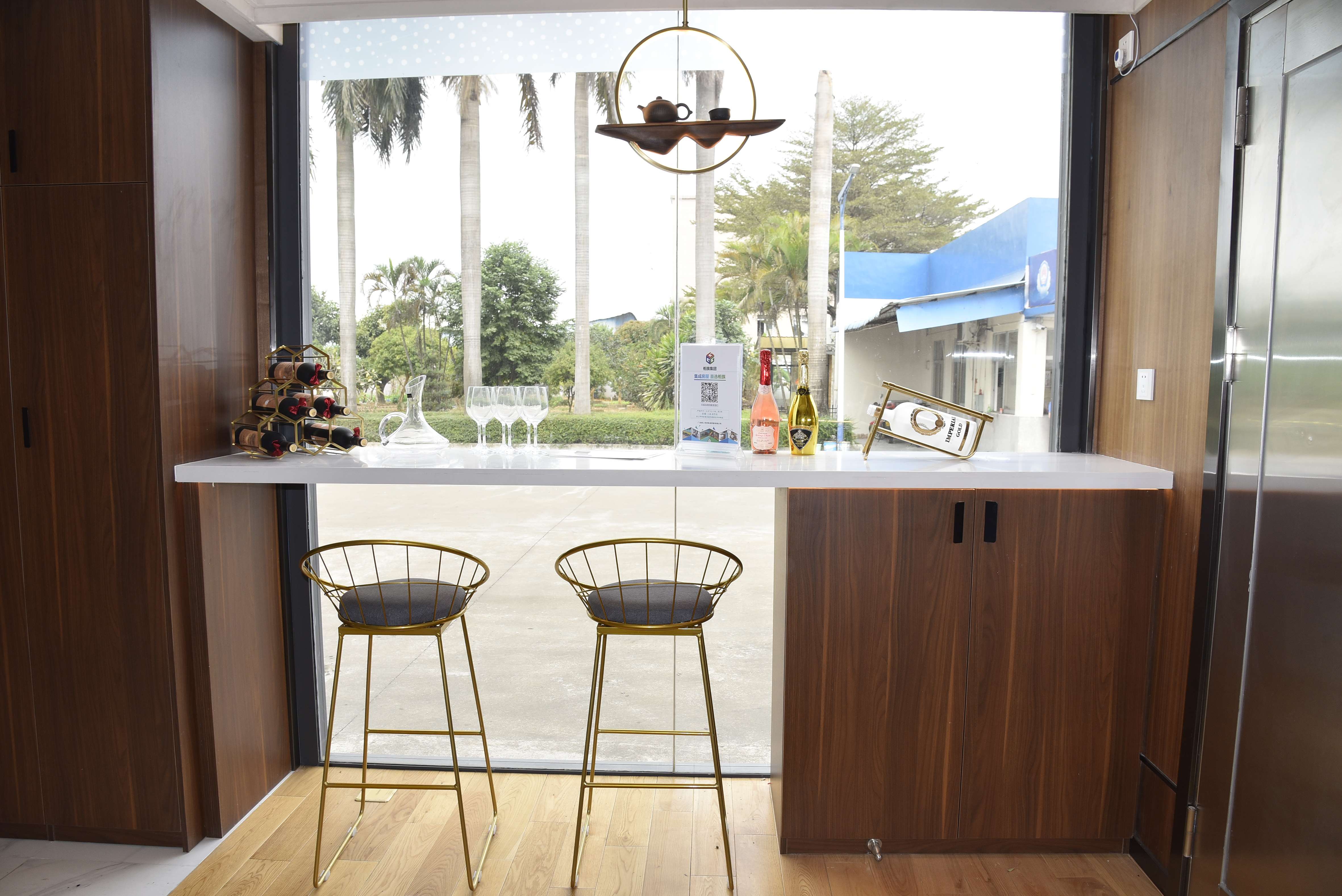 在功能布局上,一層起居、二層休閑。一層進門右邊為吧臺、左邊沙發(fā)茶幾,上部天花為暗藏小玄機的升降床。衛(wèi)生間、洗漱臺與臥室相連,飄窗小陽臺,處處體現(xiàn)的都是居住的方便與舒適。大面積落地窗,就是為風景好的沙灘、海邊等度假地設計的,室內生活溫馨小資、戶外美景賞心悅目,陶醉其中、無限樂趣。